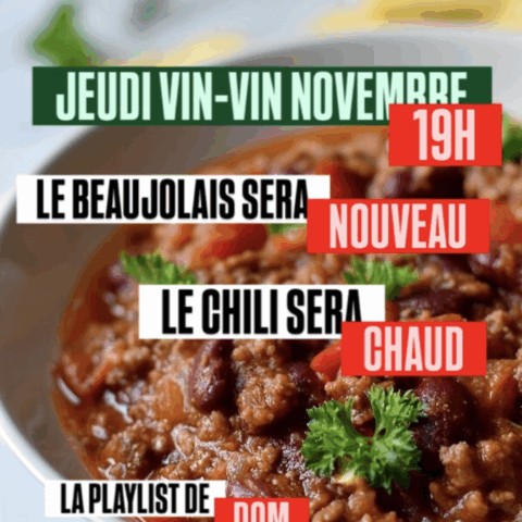 Soirée libre, Beaujolais Nouveaux et chili con carné, petits prix et bonne ambiance chez Complétement Vin-vin